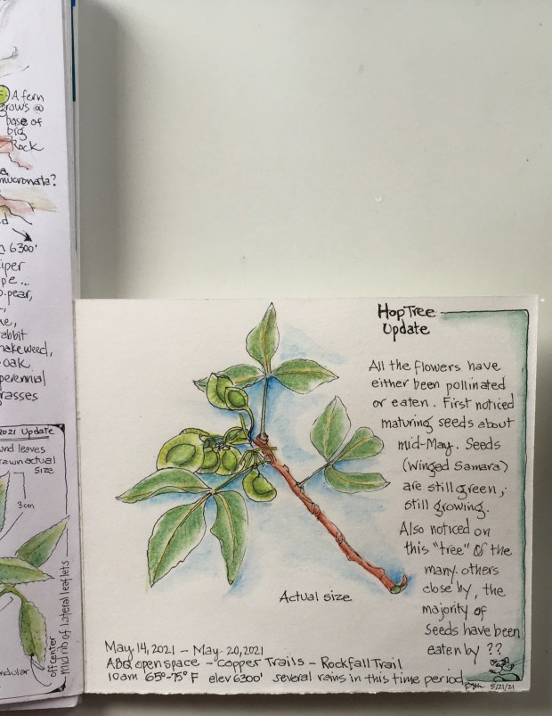 With this post I included several journal sketches from last year’s observations of the same hop tree; previews of things to come!