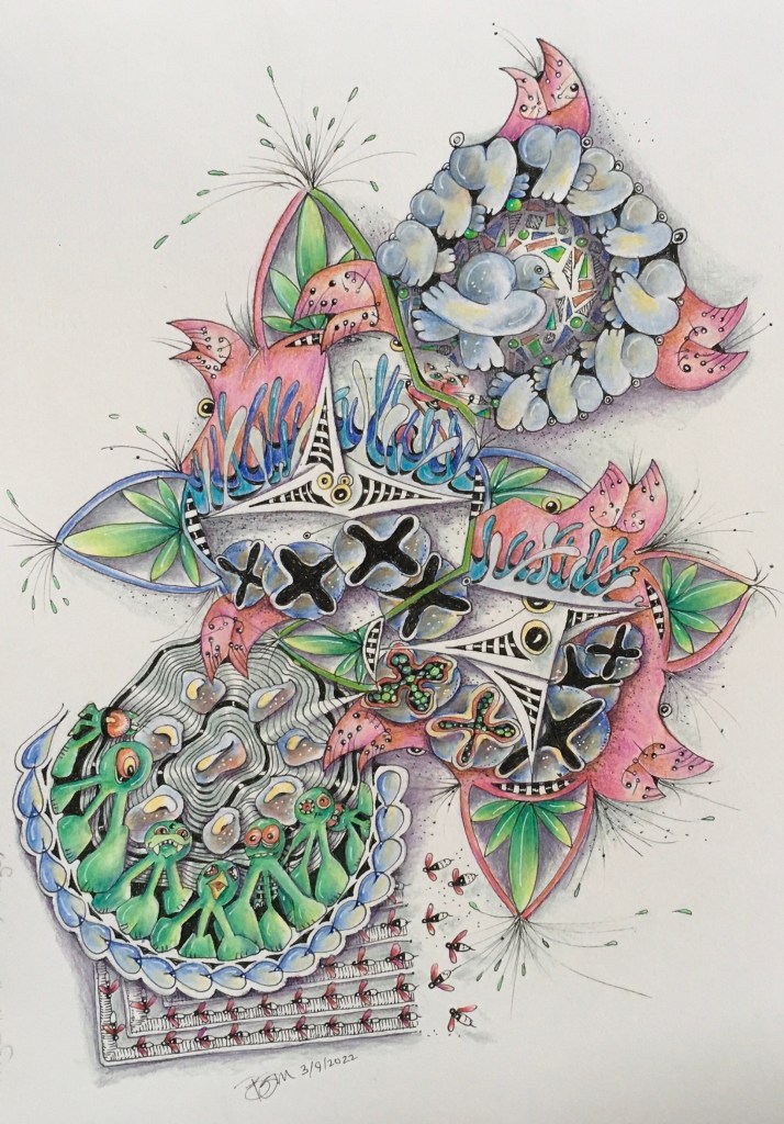 As always, Flambé invites you to follow her Zentangle-inspired antics (ZIAs) by visiting her page called Tangled Up, to see what trouble she always seems to find, past and present.