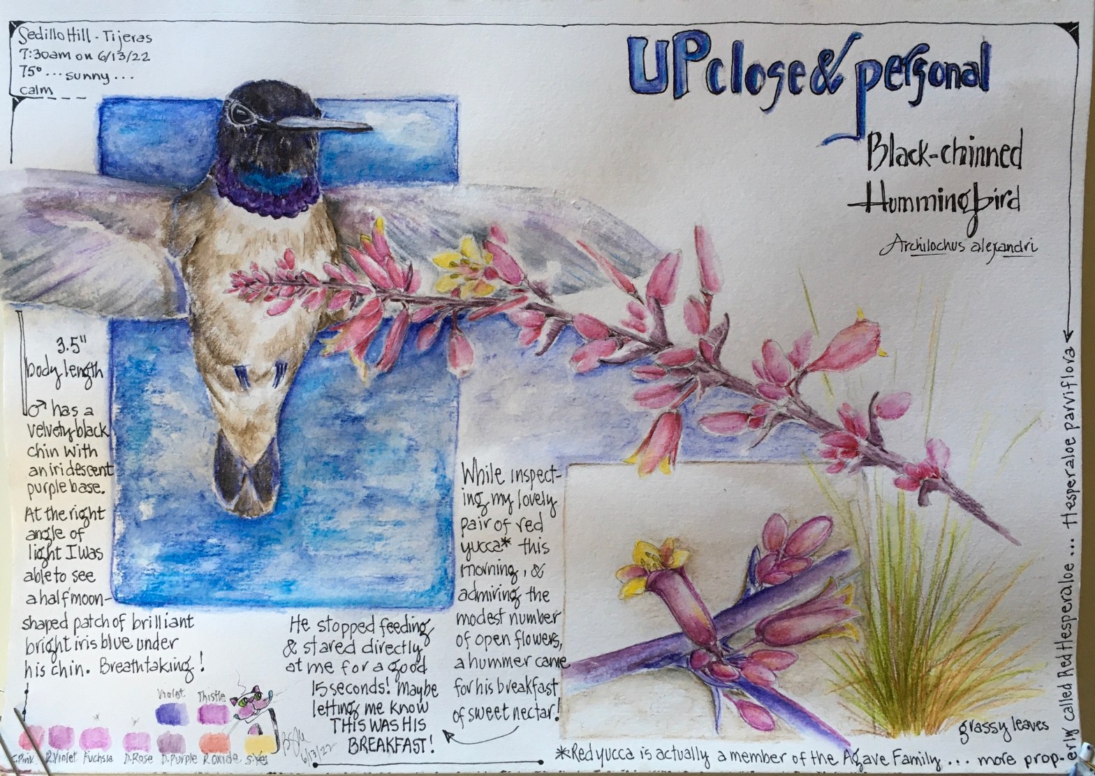 Hummingbirds are one of the most fascinating and beautiful bird species that come to our yard each summer. The black-chinned, the broad-tailed, and the feisty rufous are the three species we see most often. Competition for nectar can be fierce, and it’s exciting to watch their aerial acrobatics as they buzz back and forth to determine the “owner” of our flowers!