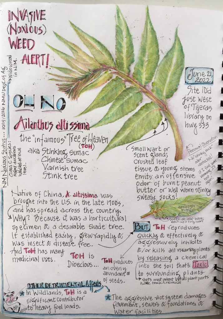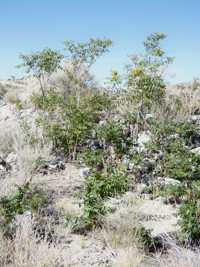 Probably best known as Tree of Heaven (ToH), Ailanthus altissima seems to be more widespread in the Albuquerque area and up in the East Mountains than I thought. And it’s officially on the noxious weed list for New Mexico.