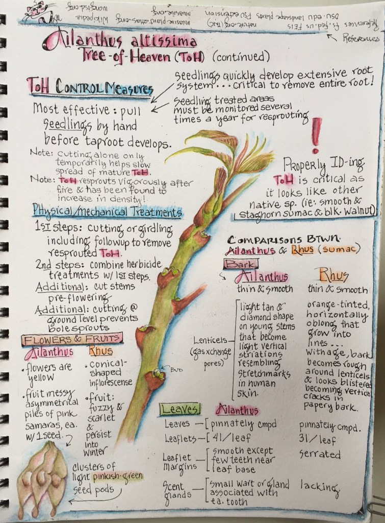 AND HORRORS! I had made a classic rookie mistake by confusing Smooth Sumac, a desirable native tree that’s found in our area, for ToH.  This was serious, and not wishing to mess up future ID efforts, I decided to learn the differences between these two species and then how to control and eliminate ToH.