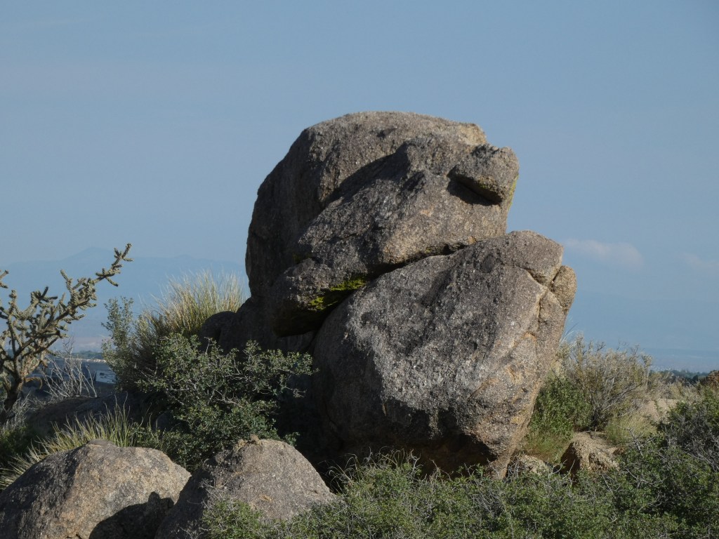 About 1.45 billion years ago, deep DEEP underground, volcanic eruptions spewed magma that “flowed” and slowly cooled, crystallizing into massive blocks of granite. Then chemical weathering due to groundwater, began eroding these blocks, penetrating the countless joints and fractures in the granite, rounding sharp edges and creating sphere-shaped boulders. Granite sculpting, called Spheroidal Weathering by geologists, continued over millennia underneath what today is known as New Mexico. Here vast land-locked seas rose and drained, tropical environments turned into deserts, all as “New Mexico” migrated on tectonic plates from the equator to its current spot in our world ….. roughly 34degrees N latitude; 105degrees W longitude.
