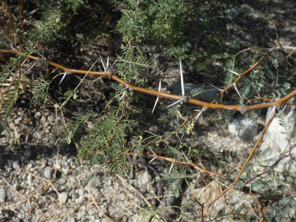 A mesquite branch sporting those tire penetrating thorns!