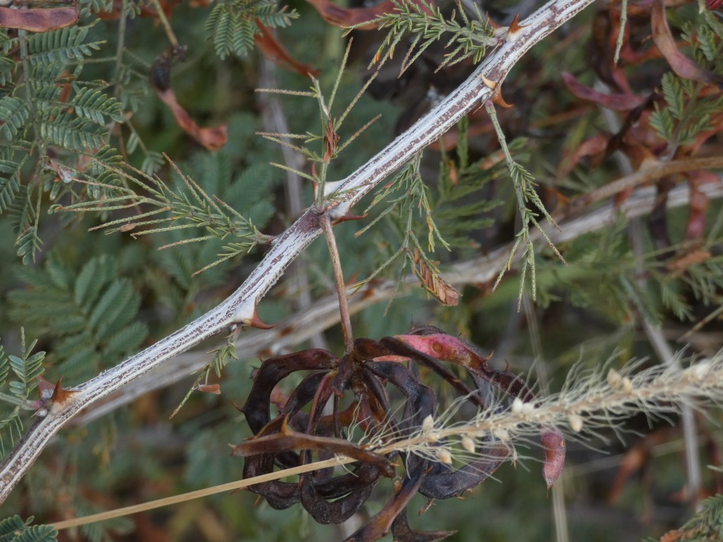 Anecdote ……Pins and Needles or The Case of the Wicked Seed: after a long drive we were ready for a hike. But choosing a cross-country trek through tall vegetation was a mistake. Nearly all the wildflowers and grasses had dried and gone to seed, and being fully loaded with ripe seeds, our pant legs, socks and shoestrings provided them an ideal way to disperse. One seed in particular was especially wicked! About 1.5” long and skinny, this hard bugger was tipped with 2 hooks on fork-like tines. Any whisper of contact with these seeds resulted in them leaping out from the seed head and hooking on for a ride. I’m not sure how their grabbers release their grip and drop to the ground, because when we returned to The Felix, we must’ve been carrying 100s of them embedded in our pants with the bottom ends of the hard sharp-pointy seeds lined up like soldiers ready to attack at the slightest threat of extraction. Ouch! After a consult with iNaturalist, submitting only seed photo, the database turned up one possibility ….. Spanish Needles! A brilliantly named member of the sunflower family. I’ll take dandelion fluff any day!