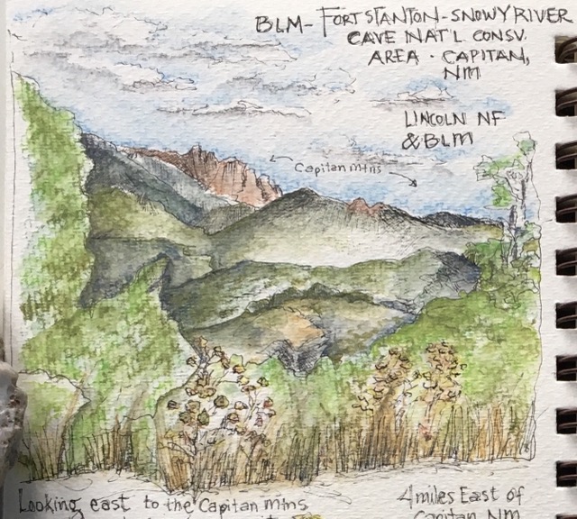 Before a big cold front blew in bringing rain and winds, I was able to do some sketching, we spotted lots of new-to-us plants (still in bloom) and a gorgeous rainbow grasshopper. Several birds (cactus wren, curve-billed thrasher and canyon towhee) paid us a call at The Felix. About to go searching for the covey of scaled quail making quite a racket somewhere in the rocks, we changed that plan ….. a good decision as we would’ve gotten drenched with rain!
