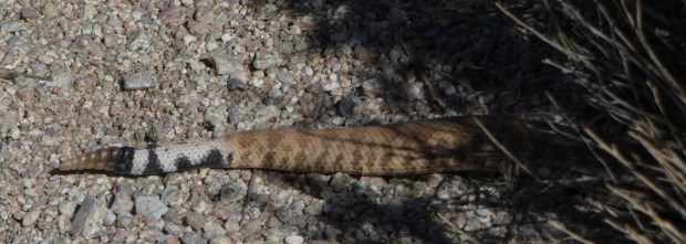 Having logged all the new flower species, insects, birds and mammals encountered on our favorite local trails, it’s now easy to daydream while hiking; easy to let your guard down and wonder about things like “where are all of the snakes hiding?” and “why haven’t we seen any roadrunners?”