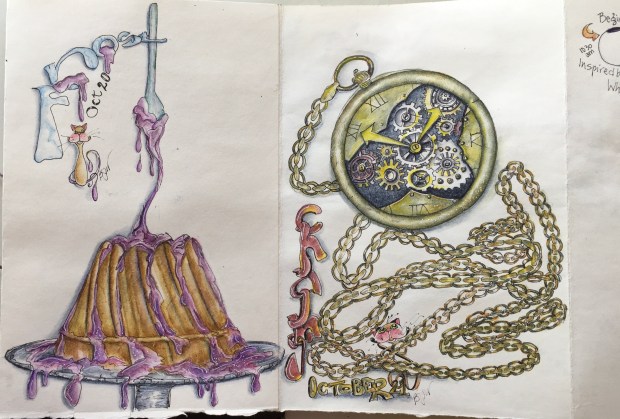 My 8th year participating in the October’s “Inktober” is complete, and I’m excited to share all 31 days of official prompts, as interpreted by moi (that’s Flambé speak for “me”). Every year, as I near day 31, keeping up with the daily prompts becomes a challenge. This year was no exception! But I was determined to finish close to the deadline.