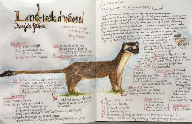 Since the Japanese Gardens section of the park was new to me, I decided to make my way there to sketch, while enjoying summer flowers and many interesting seed pods from what must’ve been an outrageous, overly abundant Spring bloom. After a slow 15 minute stroll, I had arrived at the 4-acre Japanese Gardens, complete with a waterfall, koi pond, pagodas, wooden bridges, many stone statues, and many many ducks.