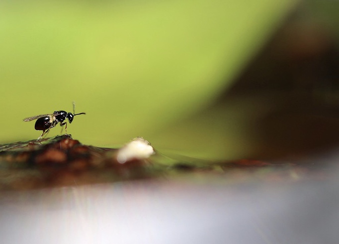 The safely hidden larva continues to eat the nutrient-rich plant tissues forming inside the gall and grows quickly until it develops into a pupa. After a few weeks in this pupal stage, an adult cynipid gall wasp has formed. Still tucked away, the adult (which is either a male or female) chews a small hole in the gall and emerges to mate.