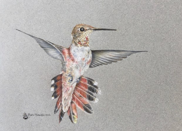 Owl in saguaro, Gift for friends, 10×12”, Colored pencil