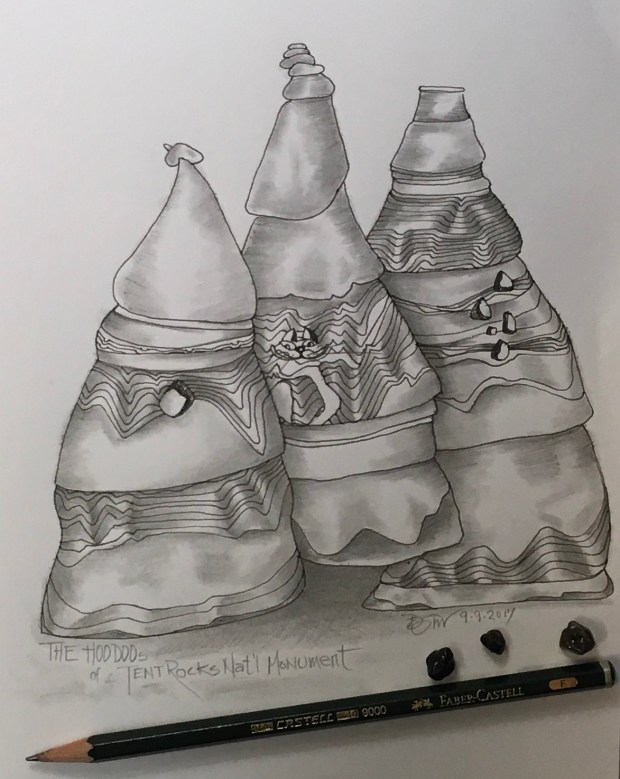 Tent Rocks, Public lands, central NM, 5×5”, Graphite
